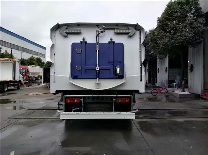 ? 清水箱充分利用了车载空间,容积大,容积达9m3。垃圾箱采用单层304不锈钢结构,倾翻卸料,带高压自洁装置。自洁装置可在垃圾箱卸料时帮助卸料,清洗垃圾箱内部。