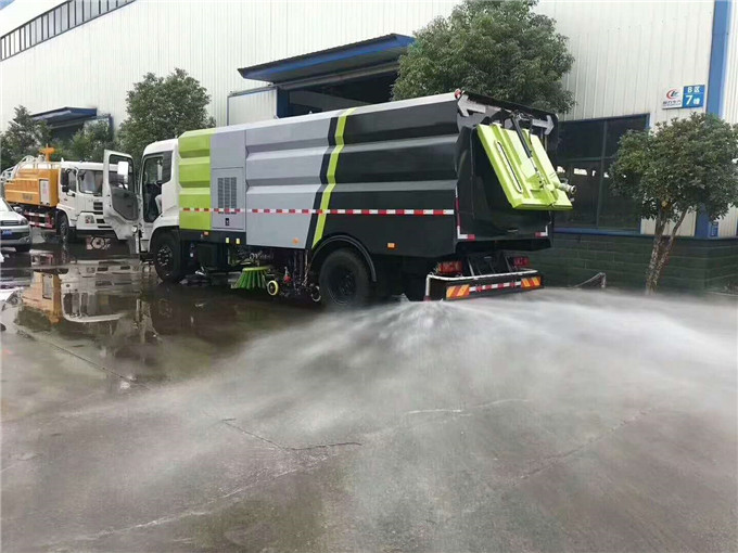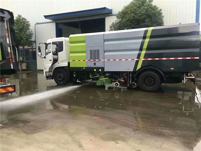 ? 洗扫车采用东风天锦DFH1180EX8型国六二类汽车底盘改装,加装副发动机、风机、高压水泵、清水箱、垃圾箱、左右立扫、带喷水杆的宽吸嘴、低压冲洗系统、扫盘降尘系统、液压系统、专用装置电控系统和副车架等改装而成。